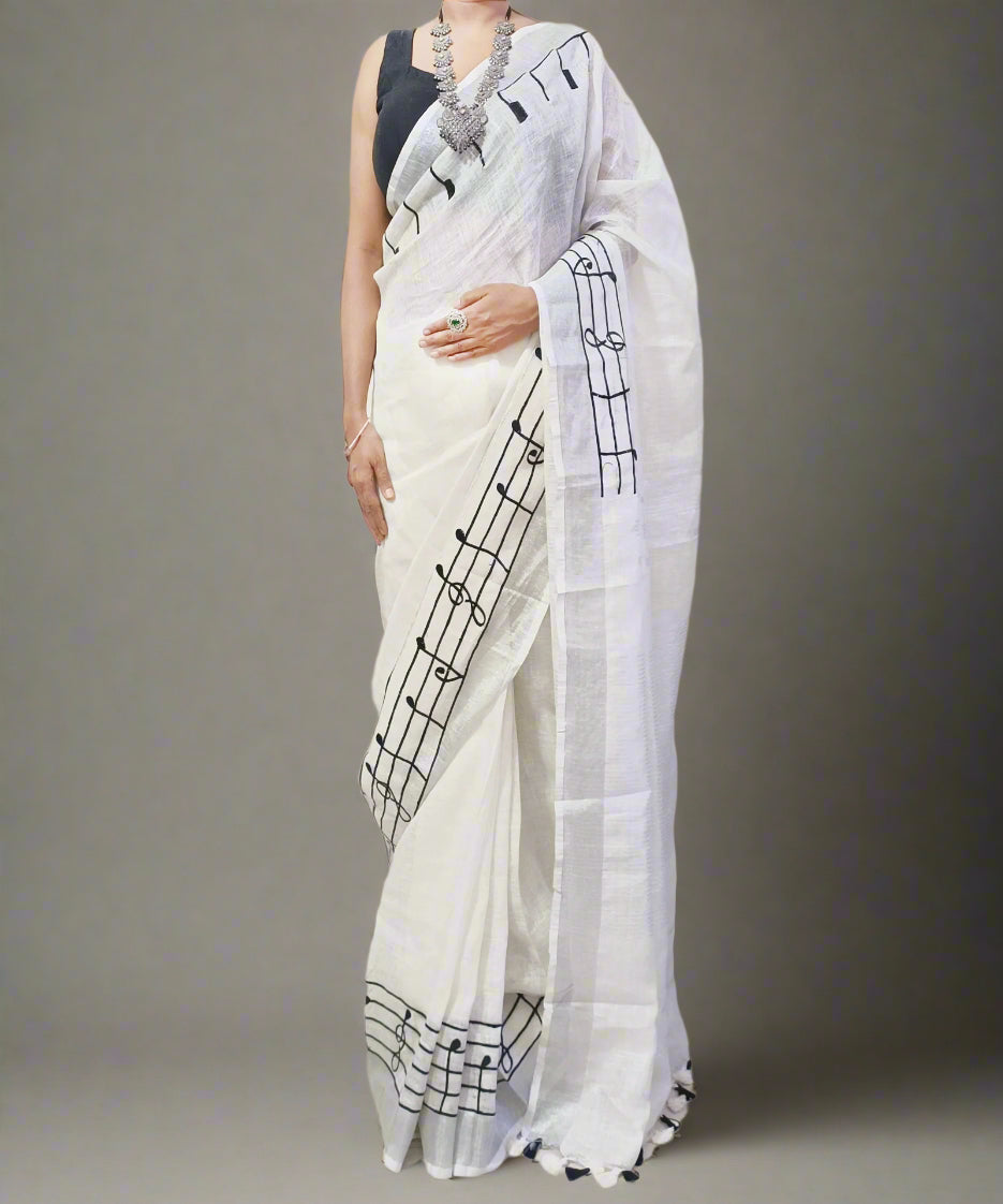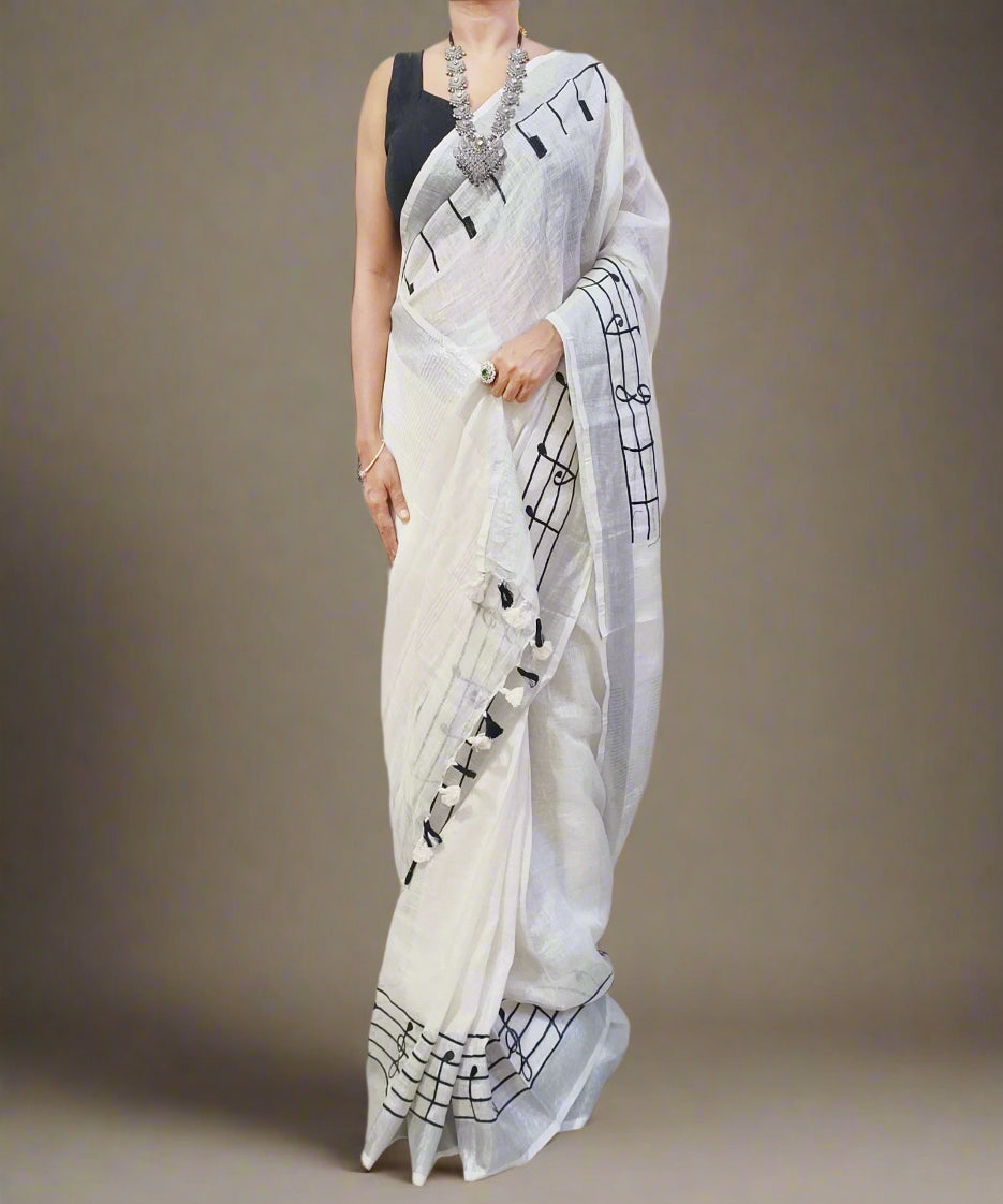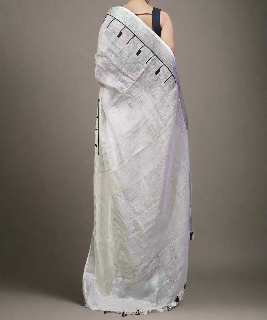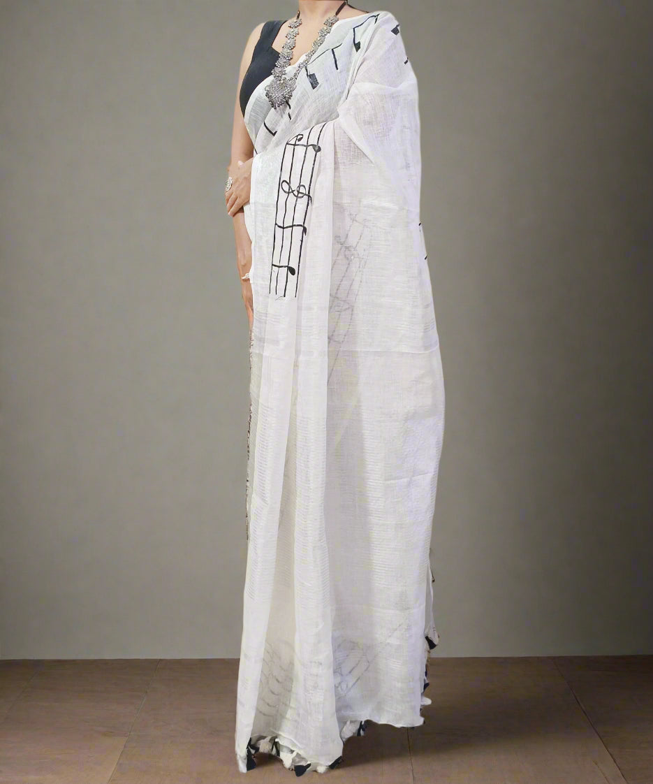 White Handloom Pure Linen Saree