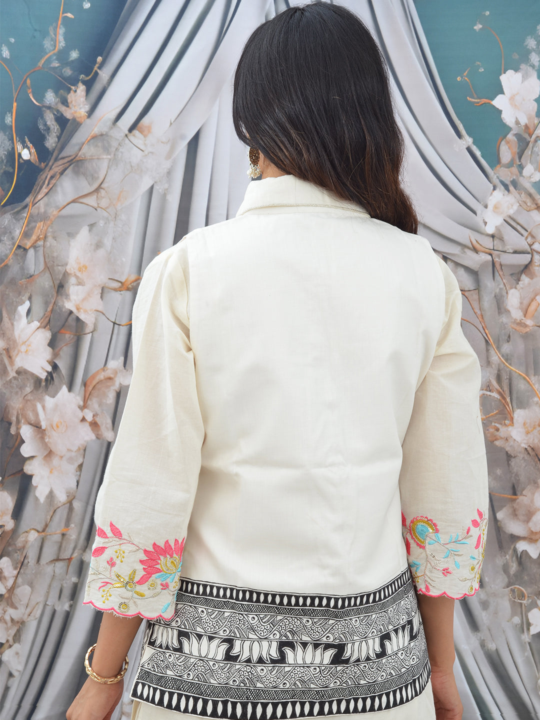 White Madhubani Hand Painted Cotton Woman’s Waistcoat