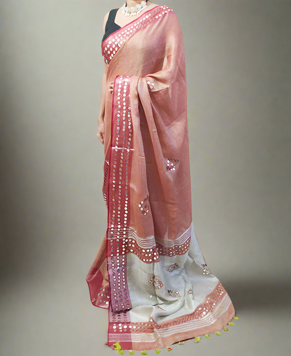 Linen sarees are known for their adaptive nature that means you can carry it anywhere you want to. Linen saree styles lend itself perfectly to both weekend and work wear! Simple and elegant, at work and at play, these sarees are universal. You simply have to get it in the right design and colour. The main advantage of shopping linen sarees online in India is that it's a very breathable material and is apt for the hot & humid temperature we have.
