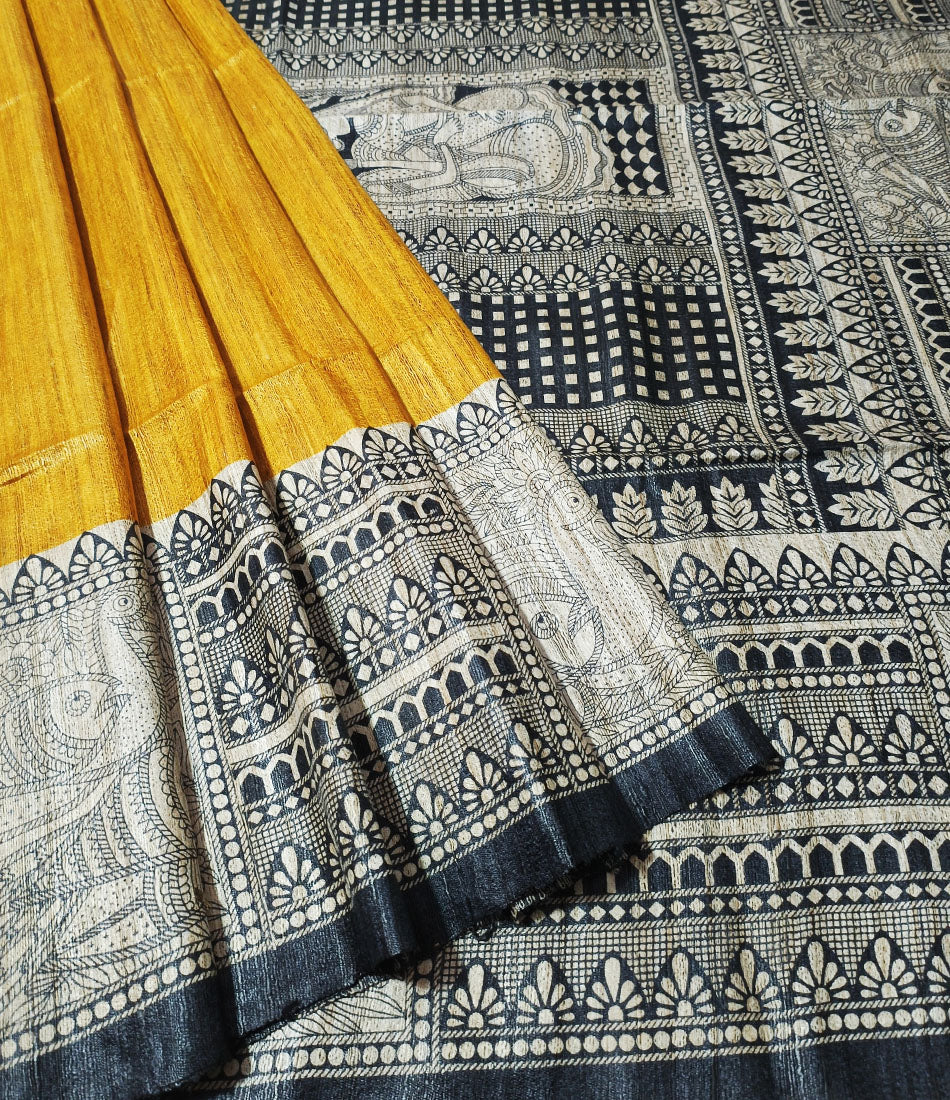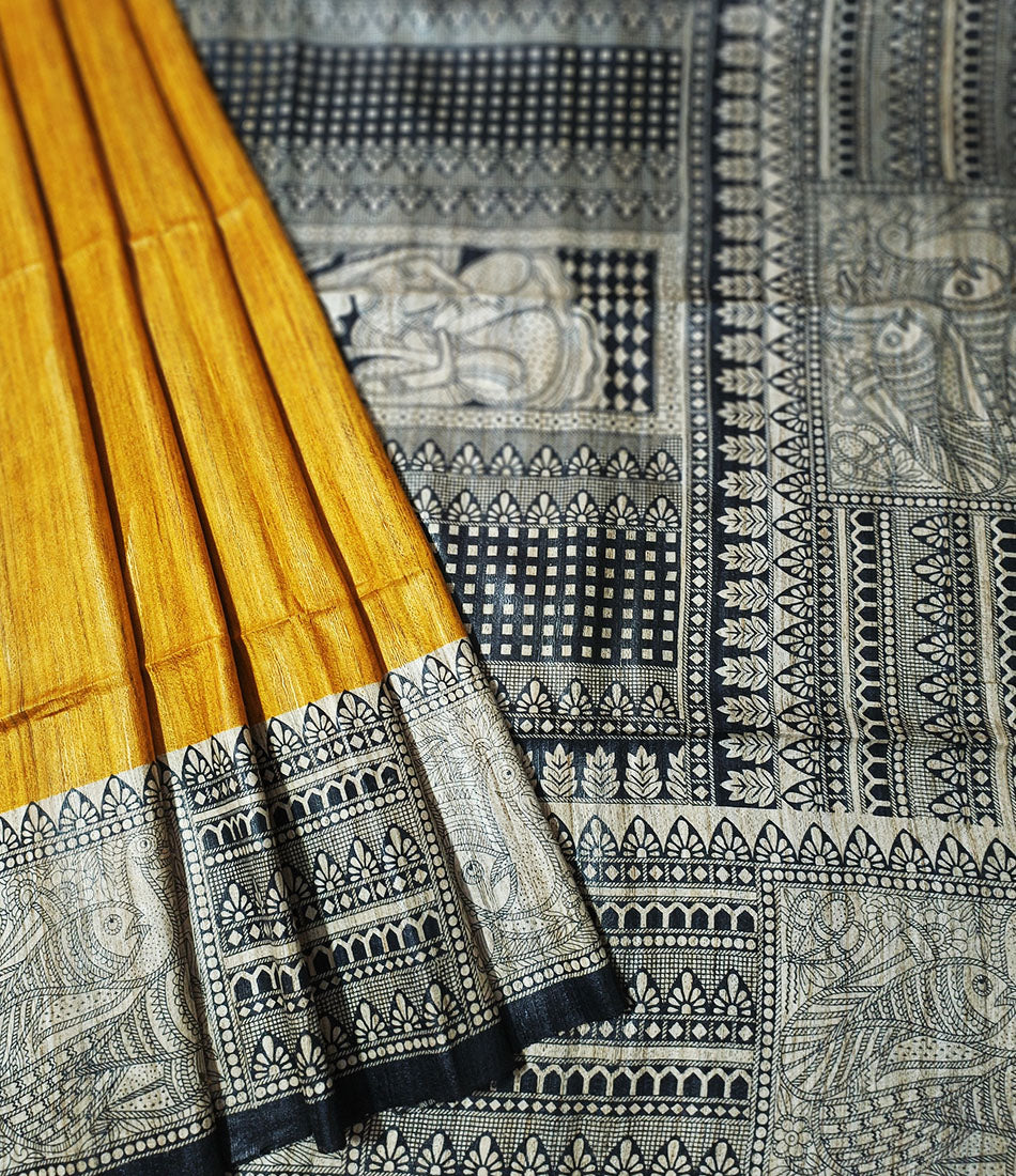 Wash & care: Dry Wash, Do Not Bleach. More DetailsThis printed pure tussar ghicha silk saree with contrast border and pallu can be the preferable choice in traditional attire.... Read More