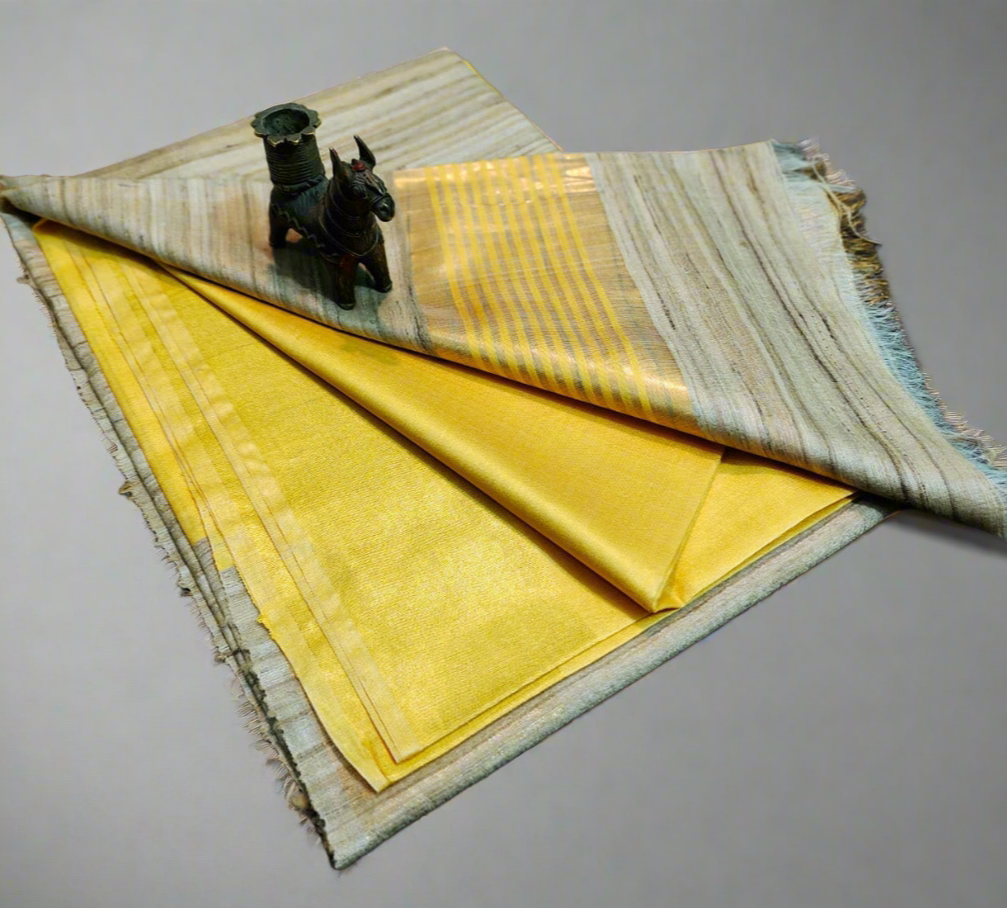 Yellow-Natural Korean Tussar Ghicha Silk Saree