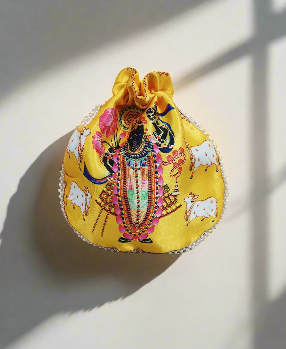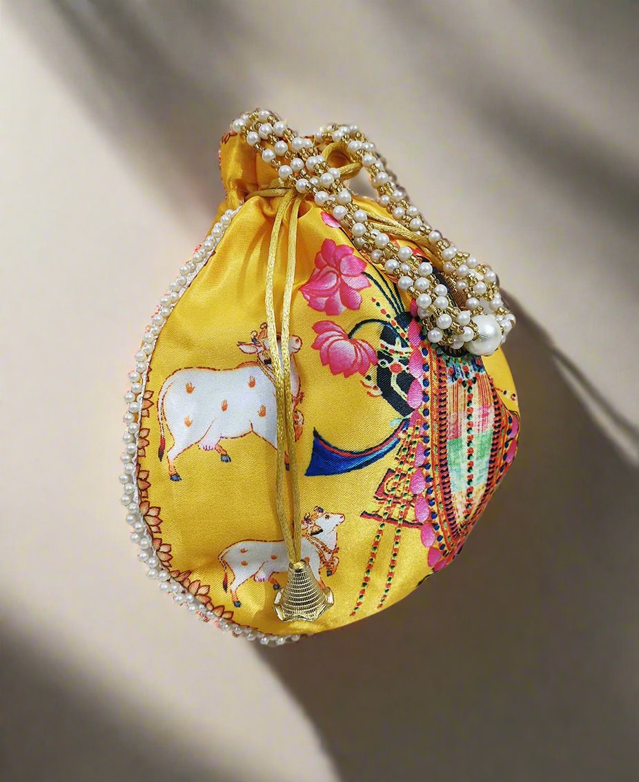 Potli Bag is a fashion accessory that one can't afford to skip. Enhanced with fine embellishments and vivid embroidered motifs, potli bags make for a must-have addition to refine your closet favourites. These potli bags are the perfect amalgamation of impeccable style and functionality. It is a great pick for festive occasions. Pair it with your ethnic wear outfit.
