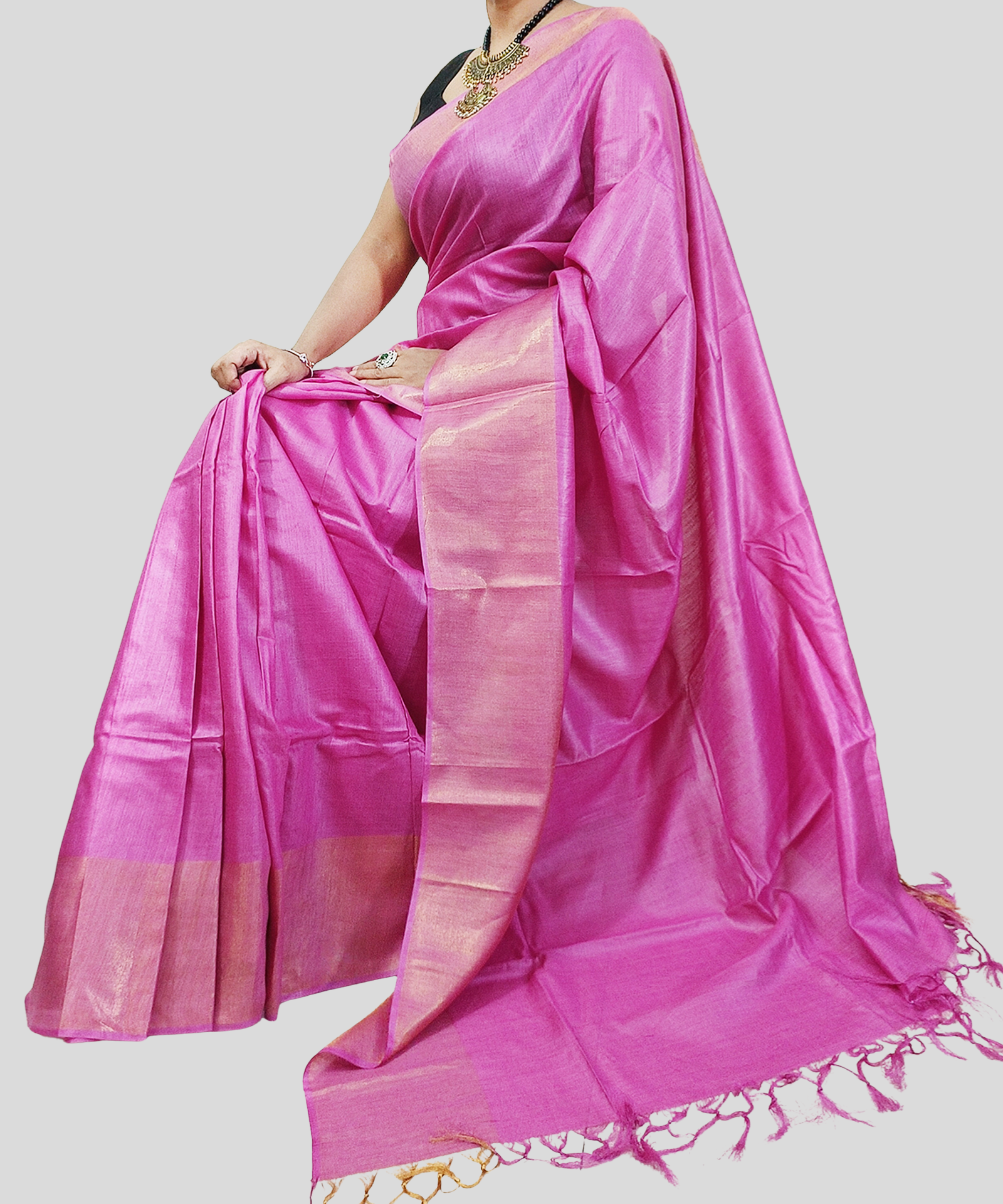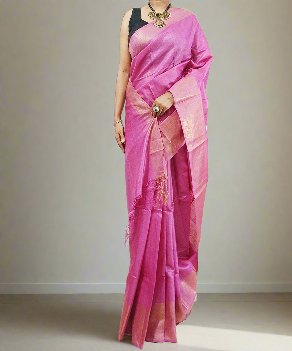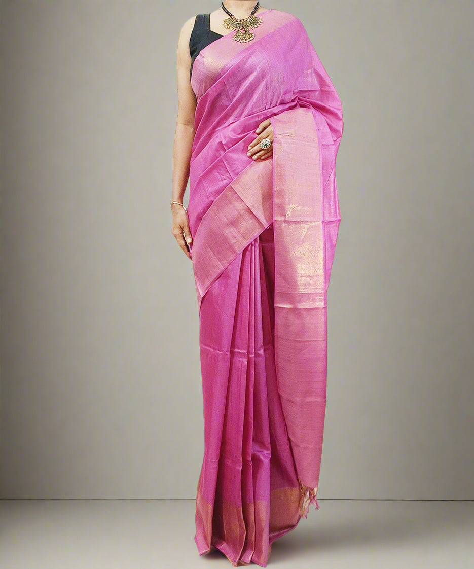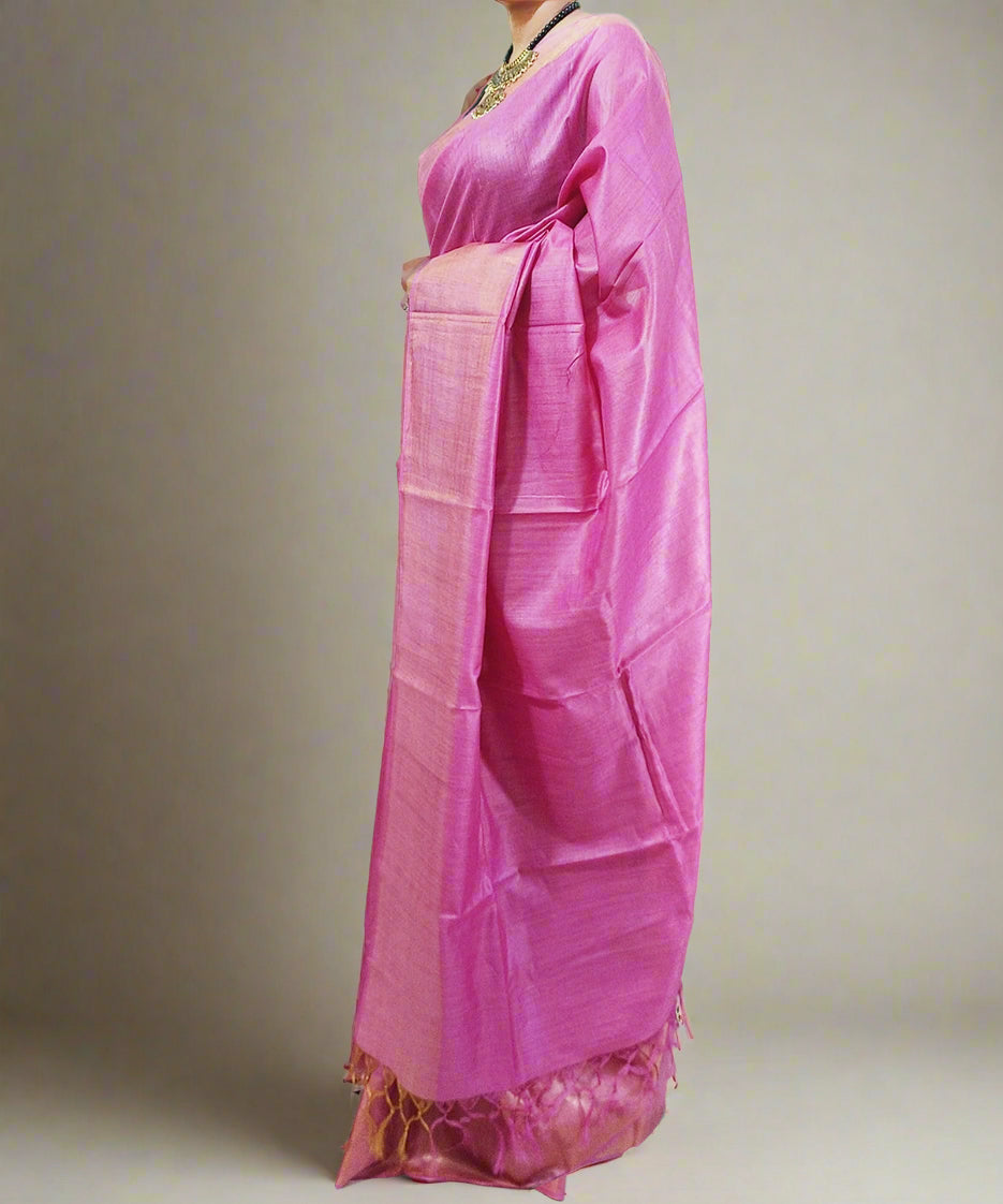 The Pink Plain Munga Silk Saree epitomizes timeless elegance and traditional charm. Crafted from luxurious Munga silk, this saree showcases a lustrous off-white hue, creating a canvas of sophistication. The fabric boasts a subtle sheen that adds a touch of opulence to the attire. The saree features a plain design, allowing its pure silk texture to take center stage. Munga silk, known for its smooth and fine quality, drapes gracefully, enhancing the wearer's silhouette with a regal allure. This saree is a versatile choice, suitable for both formal and festive occasions. The minimalistic approach to design makes it a classic wardrobe staple, embodying understated grace and refined style for the contemporary woman who appreciates the beauty of simplicity in her ethnic wear collection.